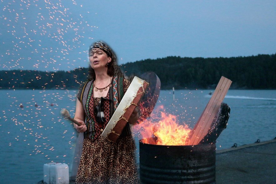 Röölän satamassa, isolla laiturilla naantalilainen shamaani Satu Haapala saapuu rummuttamaan merelle, valolle ja tuulille ja panee hyvät voimat liikkeelle ja suopeiksi kylälle ja saaristolle.