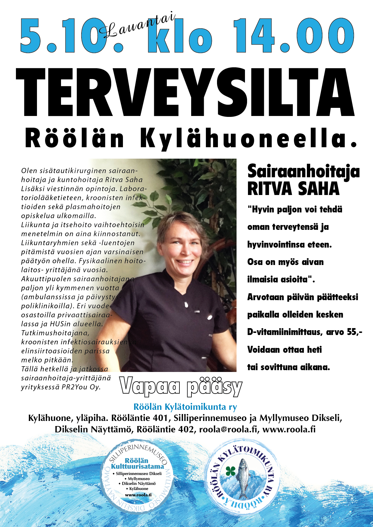 5.10 klo 14.00 lauantaina Kylähuoneella Terveysiltapäivä.